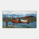 A bush pilot stands near his de Havilland Canada DHC-2 Beaver floatplane on the shore of a lake in the far north; mountains and trees are in the distance. Customise by adding your own text. The Beaver has an American registration number; a version with Canadian registration is also available. This image was derived, in part, from a US Fish and Wildlife Service photo.