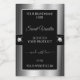 The design features a noble shimmering silver frame with fine decor lines, on a plain black background.