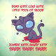 Cartoon illustration of a zombie kitten with dead kitty song lyrics. Great for Halloween. Keywords: cat, kitten, kitty, zombie, dead, death, rot, cartoon, halloween, feline, monster, thud, cold, angry, blood, pool, fly, worm, animal, soft
