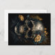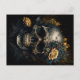 Cool postcard with dead head and decorative rose motif. Dark Art in postcard format. Choose from various paper qualities. Beautiful postcard with golden roses and cool dead head design.