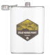 The flask itself is fine. It’s a cheap flask, obviously bought in bulk, however am prepared to overlook that. Given that it is a personalized item, I would have liked to have seen gift boxing instead of the generic packaging. Terrible printing, and/or quality. It’s a cheap, tacky vinyl. It is not cut straight and is also applied in a way that it is overhanging the bottom, causing the glue to catch on items and it will eventually roll and tear, damaging the wrap.