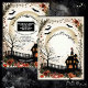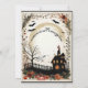 A spooktacular Halloween Haunted House invitation with a dead tree. The design features a haunted house with skulls, haunted house, fall pumpkins and bats. The text is easily customisable. Reverse side has a matching design.