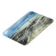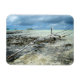 Rectangular photo magnet with a dead tree lying on a black coral reef waiting for decay in the middle of the picture-perfect blue lagoon of a Pacific atoll in the Tahiti archipelago French Polynesia island.