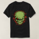 Green monster skull with yellow fangs and a red cross-hairs in its evil eye. With a red outline and smattering of splattering. T-shirts, hoodies, cards, gifts.