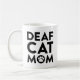 The black text "Deaf Cat Mum" is stacked in three lines of text in uppercase. The "o" in "Mum" has a white paw inside.