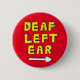 Deaf left ear partial deafness hard of hearing 6 cm round badge