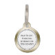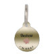 Paw print and faux gold personalised pet ID tag for deaf pets with faux gold metallic background and embossed look, faux foil rose gold paw print. Custom pet's name in black script. Reads 'I'M DEAF' at bottom in curved text. Back has phone number with name and custom contact details in case pet gets lost on easy to read white circle with faux gold metal border. Note: All images are printed. Not actual gold metal or foil.