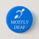 Deaf Symbol over the wordS MOSTLY DEAF. 6 Cm Round Badge