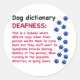 Deafness - dog dictionary DEAFNESS: This is a malady which affects dogs when their person wants them to come back and they don't want to. Symptoms include staring blankly at the person, then running in the opposite direction, or lying down Little Pearls of Wisdom to make you smile. A perfect gift for your dog. Also perfect for any dog lover or owner.