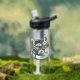 The silly black-and-white graphic on the cat lover design is the classic, sushi-loving, heavy breathing cat meme with pixelated deal-with-it sunglasses. A perfect water bottle gift for introverted internet cat owners who love old-school Internet memes and funny kitty cat mashups. Black and white.
