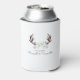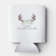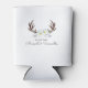 VG Invites rustic barn wedding favour koozie features dusty blue florals with deer antlers over the words "Love and Thanks" and personalised with the bride and groom's name. A rustic yet boho choice for spring, summer, fall and winter weddings. Designed by Victoria. To see more wedding favours visit www.zazzle.com/vginvites