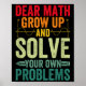 Dear Math Grow Up And Solve Your Own Problems Funn Poster
