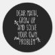 Dear Math Grow Up And Solve Your Own Problems Teen Classic Round Sticker