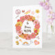 Celebrate a special mom with this heartfelt Mother's Day card. Featuring a charming retro floral wreath in warm pink, peach, and yellow tones, along with whimsical accents like hearts, a peace sign, rainbow, and dove, this design radiates love and positivity.