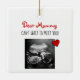 "Dear Mummy" written in fun, red font and "Can't Wait to Meet You!" in elegant, black text. Substitute the picture for your own sonogram, or a baby photo. Your choice. "Mummy" can be changed to "Daddy" if you prefer. Design is on both the front and back. Available in different styles, but if you decide to switch to another shape, please preview it first to make sure you like the results before ordering it.