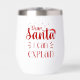 Rock your Christmas events in this fun design. Text: "Dear Santa I can explain" in Christmas script typography with a red and white Santa hat.