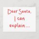 It can be hard to be on your best behaviour all year long. And we all have those moments where something happens that makes us look bad, but aren't what they seem. Let Santa be aware that you're ready to explain your past. Reads "Dear Santa, I can explain..."
