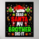 Dear Santa My Brother Did It Funny Christmas Boys Poster