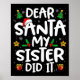 Dear Santa My Sister Did It Funny Christmas Boys G Poster