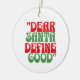This Christmas ornament showcases an AI generated design with a playful twist. It features a groovy font style spelling out 'Dear Santa' in vibrant shades of red and green.