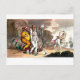 Death and the Circus postcard : This is one of a series of vintage art/ Illustrations from: The English Dance of Death book published in 1816, art by Thomas Rowlandson, poetry, by William Combe circa 1815. Here you have Death presenting the hourglass to what appear to be a troup of preformers, perhaps a circus troupe or playwrights? you have another couple wandering away towards ships in port in the background. . The Dance of Death, or Danse Macabre art/ genre stylised Deaths approach of people of all stations and walks of life, reaffirming that Death is the great leveler/equalizer. They were produced as an artistic genre of religious works from the 1400s thru the 1800s, period to remind people of the fragility of their lives and how vain are the glories/pleasures of earthly life