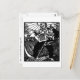 Totentanz Death and the Farmer postcard: This vintage art is part of otto wirsching's dance of death/ Vom Totentanz Anno, circa 1915. This was the most significant of the many “death dances” produced during the First World War, He was greatly influenced by the Dance of death woodcuts of the old German masters of the Renaissance. His choice of images, however, is distinctly modern: in his the figure of Death, in the traditional form of a skeleton, confronts a variety of contemporary figures who will meet their doom as a result of the devastation of this new war. Overall Wirsching's, Vom Totentanz is a grim indictment of the evil of war and man’s innate inhumanity to man. By alluding so directly to the hallowed stylistic tradition of the German Totentanz, Wirsching’s philosophical message is all the more damning. this particular woodcut depicts a man/ farmer reading a newspaper, Death stands so close to him that only his boney skull and reaching hand can be seen swiping the farmers scythe. This alludes to people getting the news that led to world war one.