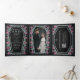 Make a bold statement of eternal love. This gothic wedding invitation features ‘Till Death Do Us Part’ in a coffin-shaped frame, adorned with thorns, roses, and silver accents against a black background with your own QR code. Perfect for a hauntingly romantic celebration! Personalise the text, font, and background colour to suit your design preferences. Matching Items in our shop for a complete party theme. Please note that the silver on the invitation is NOT real foil and is printed in flat colours