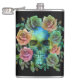 DEATH GREEN SKULL WITH FLOWERS HIP FLASK