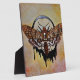 Original watercolor painting by Sandra Gale featuring the Death's Head Hawk Moth with its notorious skull like design on its back. Moth is painted on a multicolor peach background that makes this insect really stand out. The actual skull on the insect is a lot less detailed, but artistic license was taken for a more interesting design. Great design for guys or kids or anyone who loves nature, moths and butterflies or just a really cool art design.
