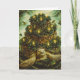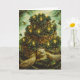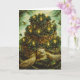 Watercolor surreal drawing of a Forest Queen Sulcata tortoise with a floral chocolate birthday cake shell and birds. Happy birthday text inside the card. Perfect birthday card for surreal art and turtle lovers. Model: Trumpette.