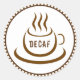 Illustration of a cup of coffee with text reading "Decaf"