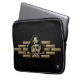 The sleeve is made of nice feeling material and seems very durable. I'm not sure how easy it'll be to clean, but the construction seems sound and the fabric is quick thick. I also like the double zipper. The printing is lovely and appears durable. The white on black contrast is nice, and the design very elegant.