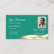 Decent Dark Teal Wavy Gold Decor Initials Photo Business Card