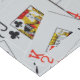 Featured in a colorful pattern is a deck of scattered playing cards.
