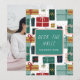 Festive deck the halls one photo Christmas card features a modern handwritten font, and colourful illustrated gift boxes with faux gold dots.