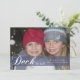 Deck the halls ribbon flat holiday photo card. Christmas photo card with a transparent blue ribbon at the bottom and the words, deck the halls. Fully customisable by you! If you'd like to see this design in a different size, colour, or product, just email me at classicholidaydesigns@gmail.com. I'd be happy to assist you.