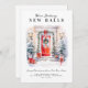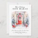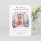 Announce your new home to family and friends with this modern holiday announcement card, with festive cheer and watercolor door and christmas elements.