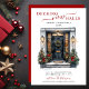 This watercolor new home "Decking New Halls" holiday announcement card with "Merry Christmas 20XX", your new address, your family name and your first names in modern yet traditional fonts in black and red with a coordinating red back would be perfect to send to your friends and family this Christmas. The black front door could be anywhere and the festive lights, red bows, Christmas trees, and wreath add that extra touch of holiday spirit. To customise and make these your own select "Personalise this template" and type in your information. It's so easy!