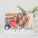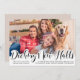 Modern Decking New Halls, hand lettered, single photo holiday card. The photo template is set up for you to add a horizontal photo and you can also add your new address and personalised greeting. Minimal typography design with cool black and white hand lettering which sits as a text overlay at the bottom of your picture. Please browse my store for alternative festive wording and colours on the back (or click "customise further" to change the background colour yourself).