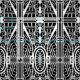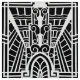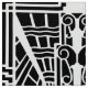 Fabric in a pattern based on Art Deco architectural details - white on a black background