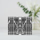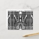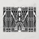 Postcard in a geometric pattern based on Art Deco architectural details - white on a black background
