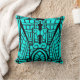 Deco Architectural Pattern, Turquoise and Black Cushion
