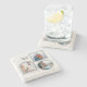 The coasters are gorgeous, a quality feel and heavy weight. They look like a precious archeological find. A rustic stone juxtaposed with a modern floral black and white print. I like the way the print goes slightly imperfect on the cut stone edges giving them a kind-of natural beauty.