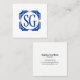 A square business card template with initials placed inside a decorative box. In this version the initials are in the Integrity bold font. Name and profession/job title along with telephone, email and website address in black on the reverse side on a white background, using variations of the Matt Antique font.