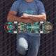 The "Deco Broadcast Hub Deck" is a Decopunk-themed skateboard deck graphic that envisions a broadcasting studio from the 1930s, updated with futuristic technology. This studio is depicted as a vibrant hub of communication and innovation, merging Art Deco style with modern broadcasting equipment and digital screens. The studio buzzes with energy, showcasing broadcasters and technicians using cutting-edge gear to transmit information. The design combines the glamour of the Decopunk era with the forward-thinking nature of modern media, featuring a colour palette of broadcast blues, metallic silvers, and dynamic reds. It symbolises the fusion of historical style with future communication technology, embodying the unique aesthetic of Decopunk where past elegance meets future innovation.