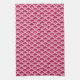 Kitchen towel in a Chinese scallop, or wave pattern, traditional in textile and enamel work, in deep burgundy wine and shades of soft pink with deep rose pink accents