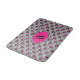 Chinese scallop or wave pattern, traditional in textile and enamel work, bath mat with monogram in medium and light silver grey / grey and black, with accents of fuchsia pink