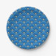 Chinese scallop or wave pattern paper plates in ocean / cerulean blue, turquoise, dark indigo, and an accent of cream