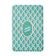 Chinese scallop, or wave pattern, traditional in textile and enamel work, bath mat with monogram in soft teal blue, aqua / seafoam and white, with accents of coral orange