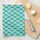 Deco Chinese Scallops, Teal, Aqua and Coral Tea Towel